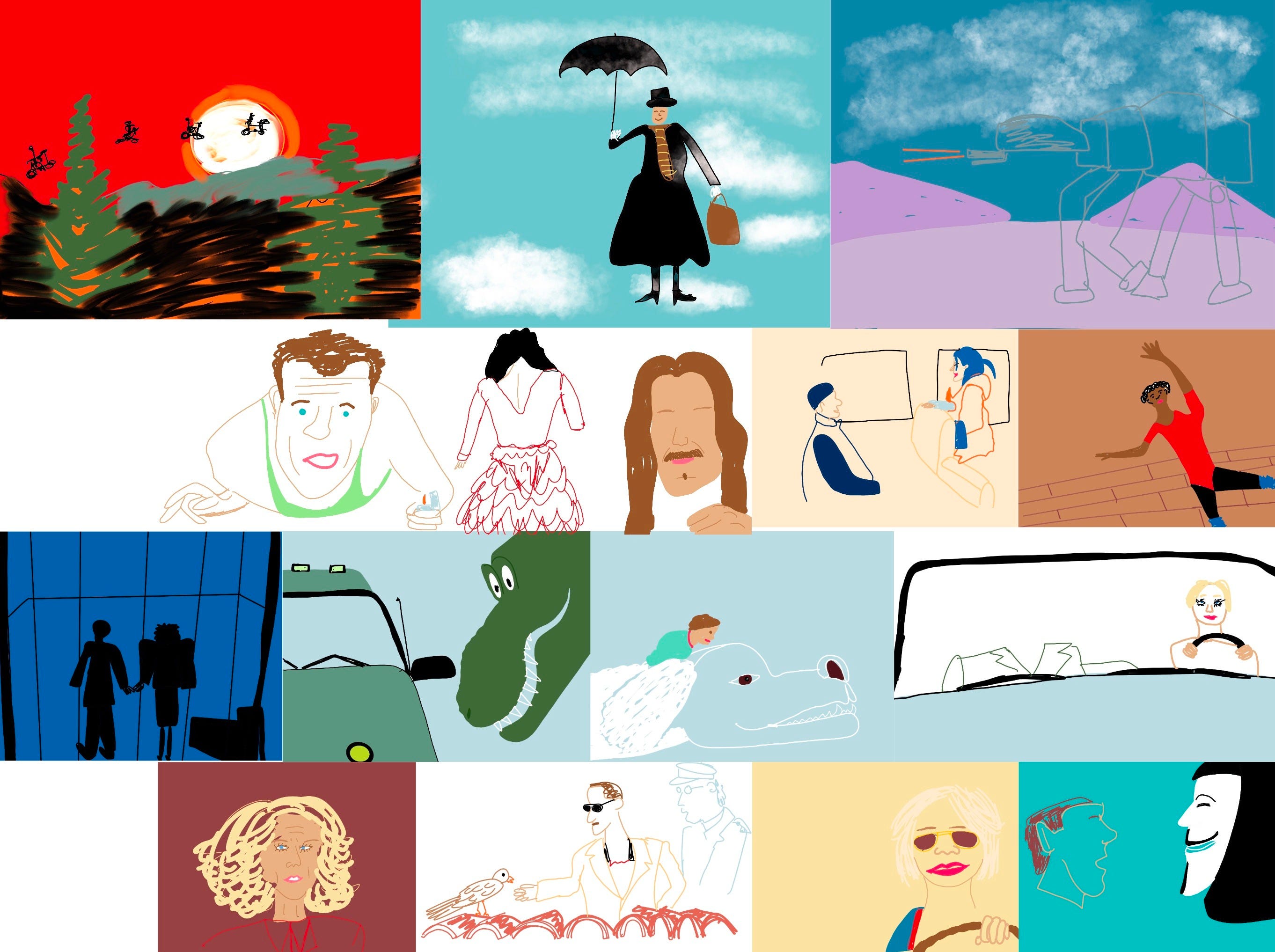 Le sujet était les films cultes de la communauté. J’avais demandé aux membres du serveur Discord quels sont leurs films préférés et j’ai cherché des scènes de ces films avec une bonne composition, des formes faciles à repérer, des espaces négatifs ou tout autre élément qui pourrait aider à dessiner une version simplifiée de la photo de référence.
