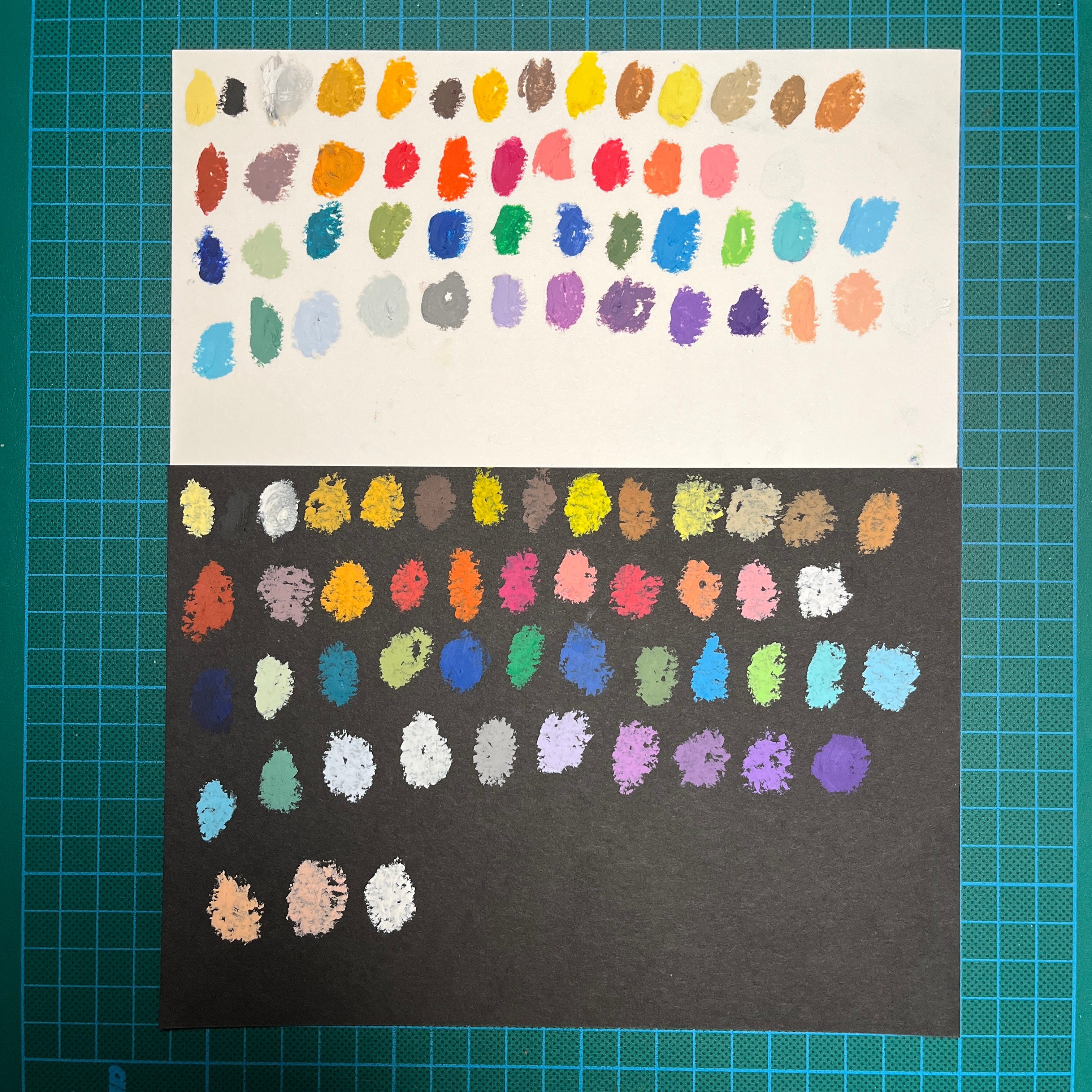 Mercredi j’ai testé les 48 demi pastels à l’huile reçus de Melissa sur du papier blanc et du papier noir. Je n’avais jamais essayé un pastel aussi crémeux !